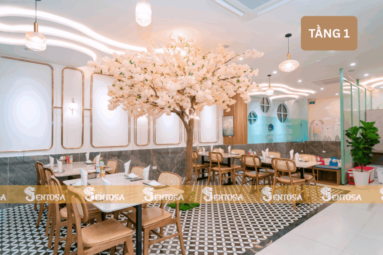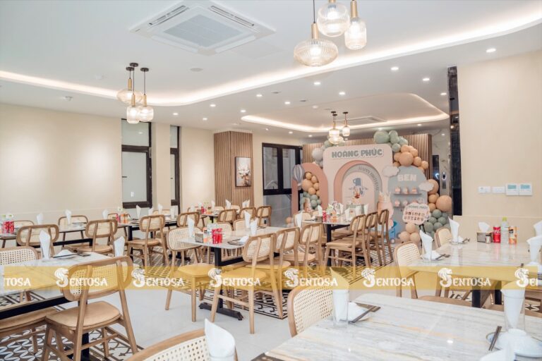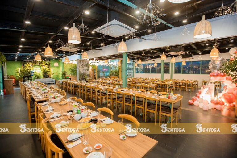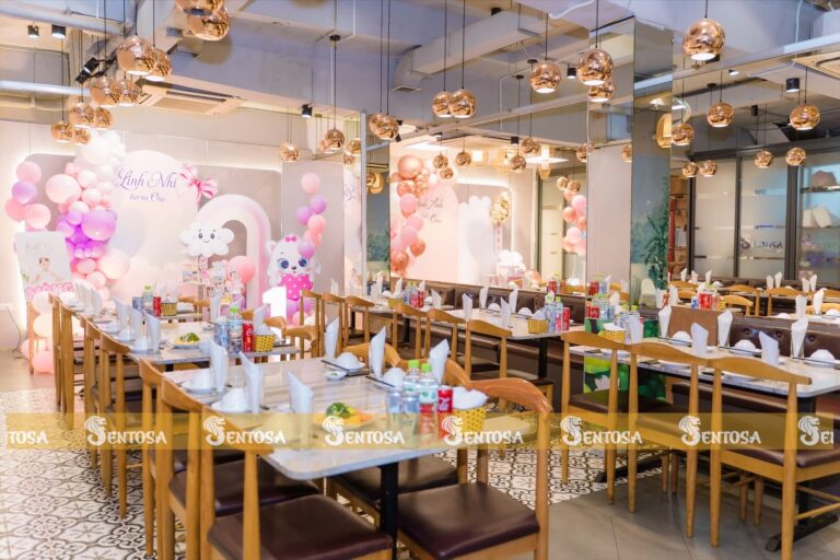 Với không gian thoáng đãng, vừa mang phong cách sang trọng, ấm áp vừa hòa hợp với thiên nhiên, Sentosa có lợi thế tuyệt đối trong việc thiết kế, trang trí và tổ chức sinh nhật dành cho mọi lứa tuổi. Mỗi tầng có sức chứa lên tới 400 thực khách và chia thành các phòng riêng phù hợp với quy mô tiệc vừa và nhỏ, trang bị hệ thống ánh sáng, đèn rọi sân khấu hiện đại, ánh sáng chan hòa.