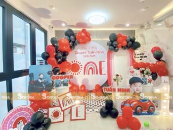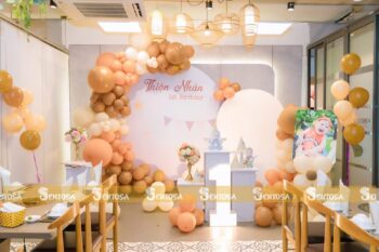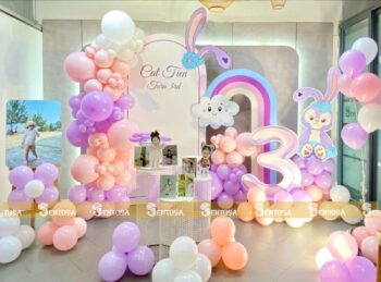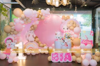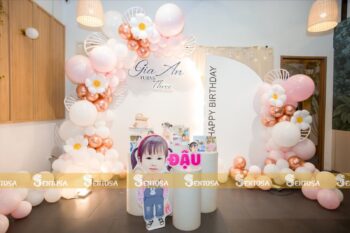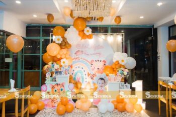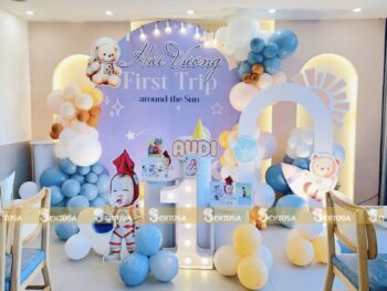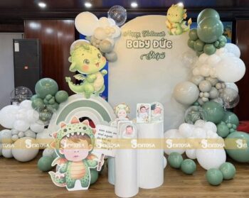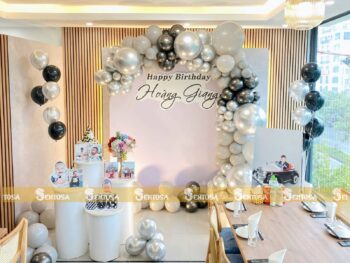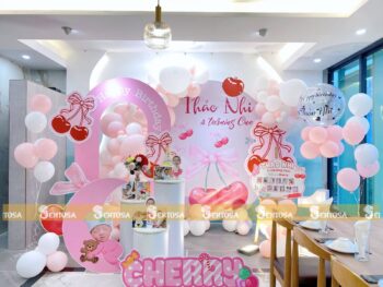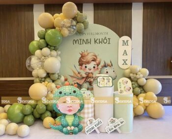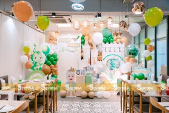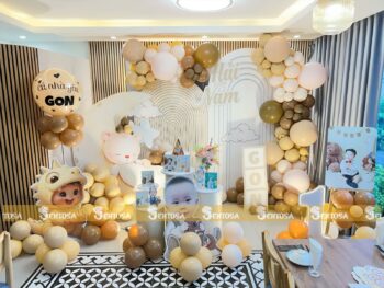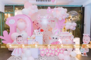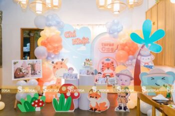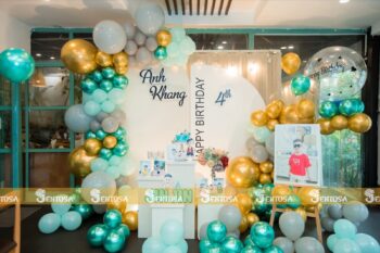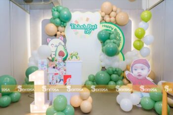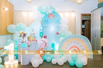 Với gói trang trí nâng cao, các chi tiết đặc biệt theo yêu cầu như chibi bé, bảng thông tin sẽ được tỉ mỉ thiết kế và chuẩn bị. (Gói nâng cao không bao gồm bóng Jumbo)